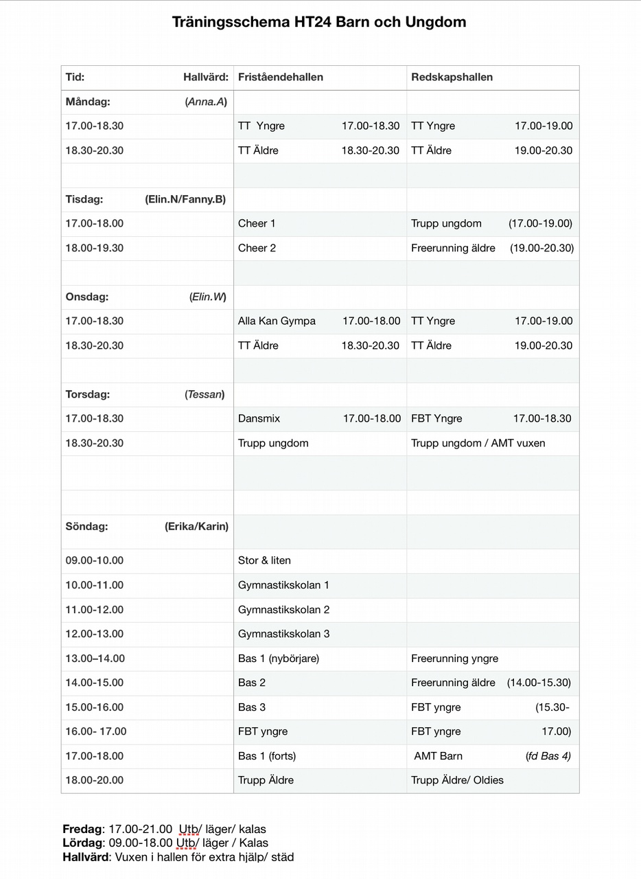 Träningsschema HT2024